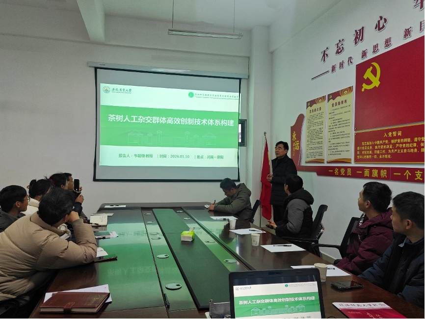 1月10日上午,应公司邀请,安徽农业大学韦朝领教授携团队在建工楼402会议室作了题为“茶树人工杂交群体高效创制技术体系构建”的学术报告。会议由z6mg人生就是博周棋赢经理主持,公司茶学相关领域教师参会。