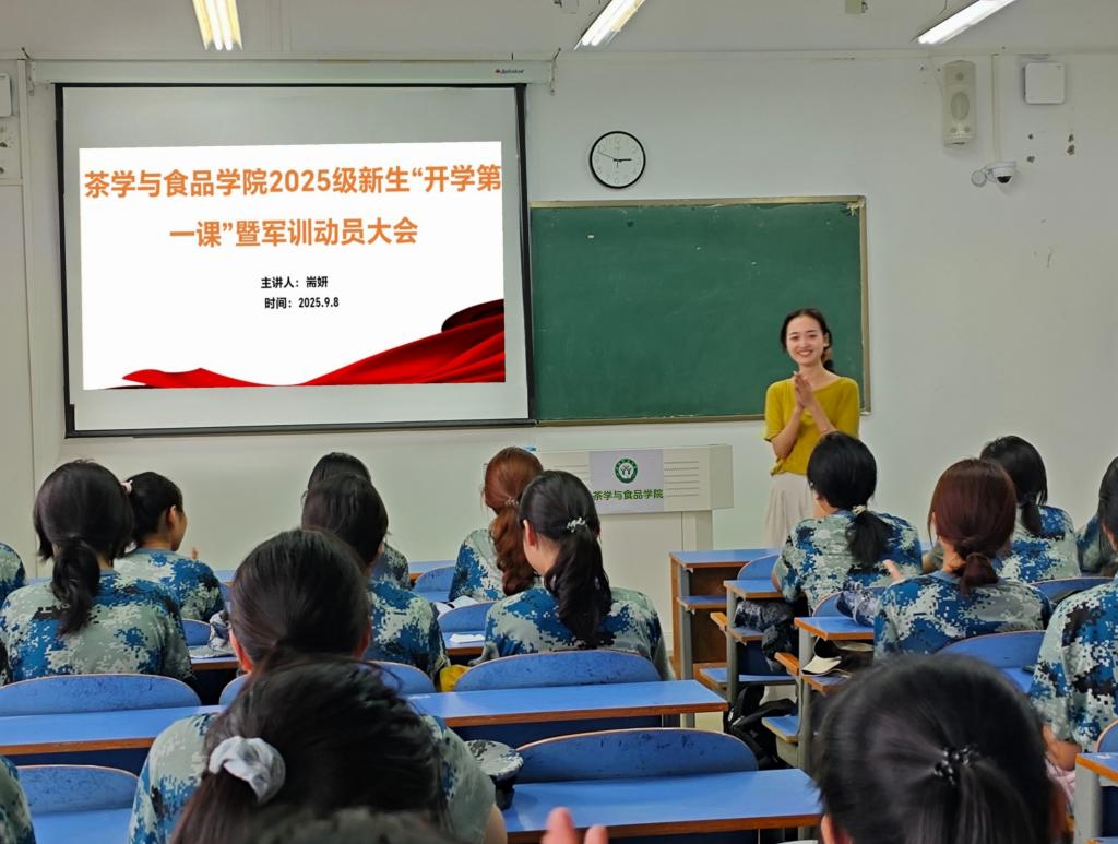 金秋送爽,丹桂迎新。为帮助2025级新生快速适应大学学习生活、明确成长方向,并为即将开展的军训工作筑牢思想基础与行动共识,9月8日下午3时,z6mg人生就是博于俊采楼513教室召开2025级新生“开学第一课”暨军训动员大会。本次会议由2025级专职辅导员耑妍主持,2025级全体员工参加会议。